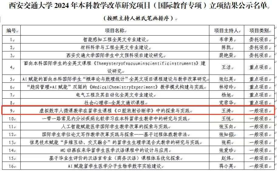 为大力弘扬教育家精神,进一步深化本科教育教学改革,加强有组织的教学研究,培育高水平教学成果,全面提高人才培养质量,充分调动广大教师投身教学研究的积极性和创造性,我院组织教师申报2024年西安交通大学本科教学改革研究项目(专项)及西安交通大学课程思政专项研究项目申报工作。近期,立项结果发布,我院课程思政专项研究项目立项1项,本科教学教改项目常规项目立项2项、国际教育专项项目立项1项、继续教育专项项目立项1项。