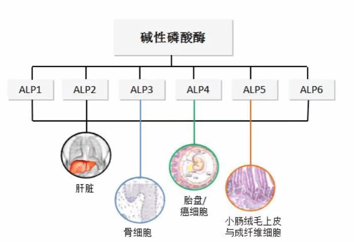 血清碱性磷酸酶在骨骼和肝脏含量最多。血清ALP升高可用于辅助诊断骨骼疾病(佝偻病、骨折、幼年佩吉特病和骨恶性肿瘤)、肝脏疾病(肝炎、胆汁淤积和恶性肿瘤)等。血ALP值显著升高可能引起儿科医生和父母的关注。