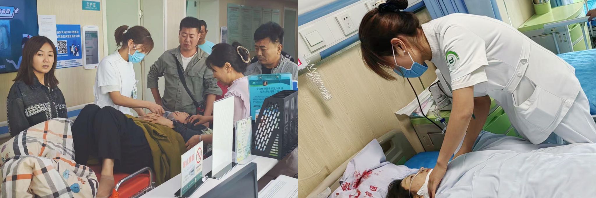 一名29岁成年女性因骑行意外导致下颌骨骨折,伴右侧颌面部开放性伤口,张口度正常且无法闭合。患者被紧急送至我院后,麻醉科手术室迅速响应,组织相关科室准备为患者进行手术。护理中心的余敏护士接到急诊科的电话后,立刻为患者准备床位,为患者办理入院手续,抽血,做皮试,做床旁心电图,陪同患者家属前往一楼影像科做胸部CT。一切准备就绪,患者在下午一点半被顺利送往手术室进行急诊手术,两个小时后,手术顺利结束,患者安全返回病房。