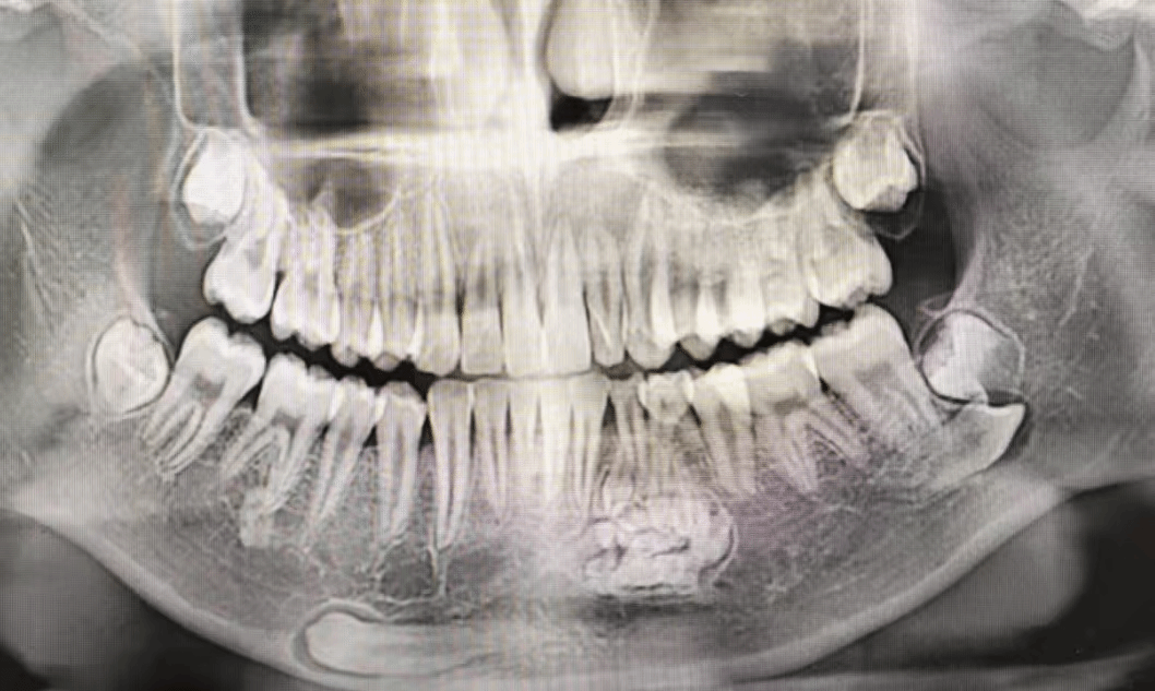 今年13岁的小海(化名)因牙齿不整齐来我院牙颌颜面发育管理中心就诊,希望通过正畸能排齐牙齿,在检查中发现他有两颗乳牙滞留,经过进一步影像学检查,揭示了他下颌骨内有牙瘤及异位埋伏阻生牙。牙瘤的出现通常伴随骨质膨隆或牙齿缺失,而异位的埋伏阻生牙则可能影响恒牙的正常萌出,因情况复杂,小海随即转至我院头颈肿瘤科接受进一步治疗。