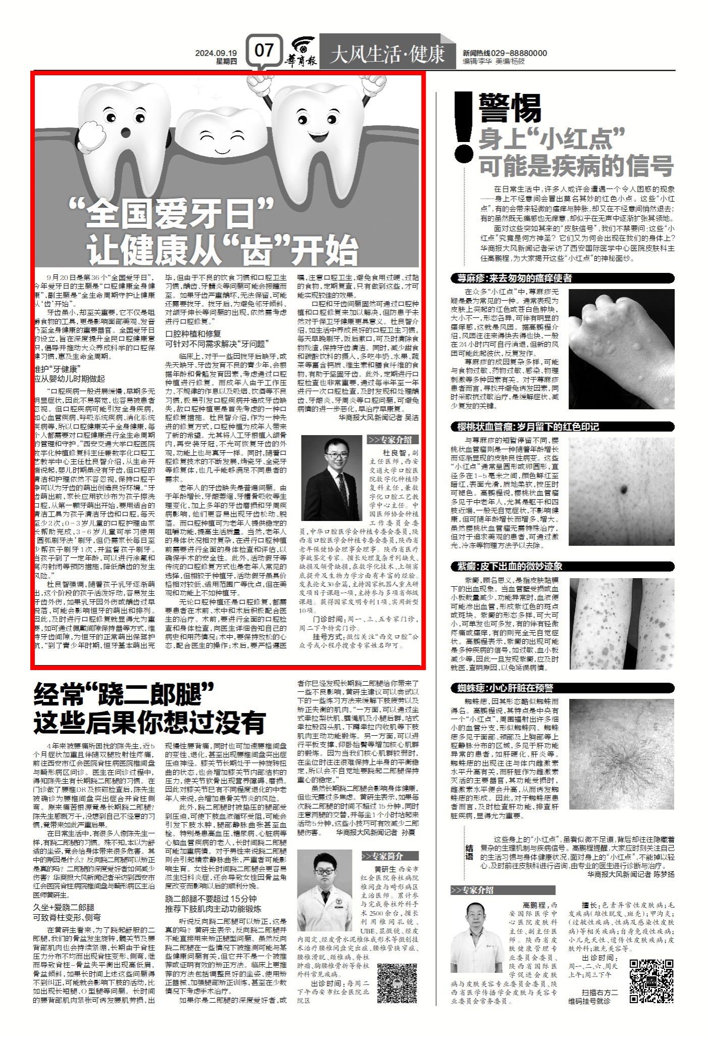 9月20日是“全国爱牙日”,这是一个关注口腔健康的特殊日子,更是全社会共同倡导“口腔健康,全身健康”理念的重要时刻。随着生活水平的提高和健康意识的增强,口腔健康日益成为影响人们生活质量的关键因素。为此,本报特别策划了本次专题采访,旨在通过权威专家的声音,向广大读者传递科学的口腔保健知识,共同守护我们的“微笑之门”。刷牙时发现牙刷上有血,照镜子看到牙龈红肿;家人朋友都说你“口气大”;牙缝逐渐变宽,吃东西经常塞牙…...