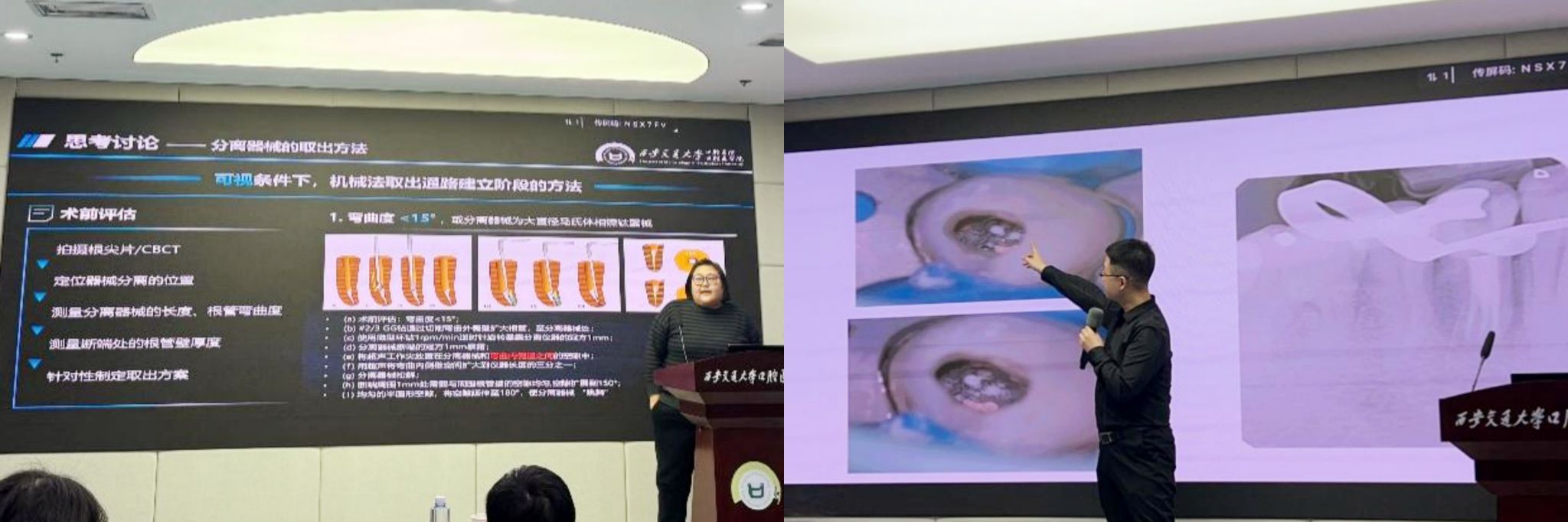 董茜茜主任与薛云鹏主治医师分别就“动态导航在根管治疗中的最新应用”及“数字化技术在牙体牙髓病治疗中探索与实践”进行了精彩演讲。通过生动的案例分析、前沿技术的介绍,展示了动态导航、数字化技术等现代科技如何助力牙体牙髓病治疗,提高治疗精度与效率,减少患者痛苦,为科室医生拓宽了技术创新的新视野,为临床诊疗提供新思路。