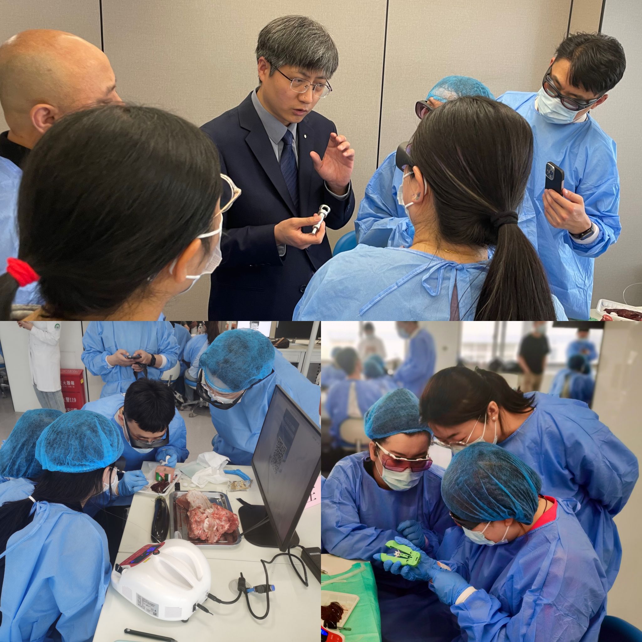 在实操培训课上,特邀中华口腔医学会口腔激光医学专委会青年委员、首都医科大学附属北京友谊医院孔亚群副教授详细讲解了不同类型口腔激光的使用要点、关键技术以及操作规范,并进行了现场示范。学员们全神贯注聆听讲解,积极参与实操,现场气氛十分活跃。通过这次实操培训,大家不仅加深了对理论知识的理解,更掌握了实际操作技能,纷纷表示获益匪浅,满载而归。
