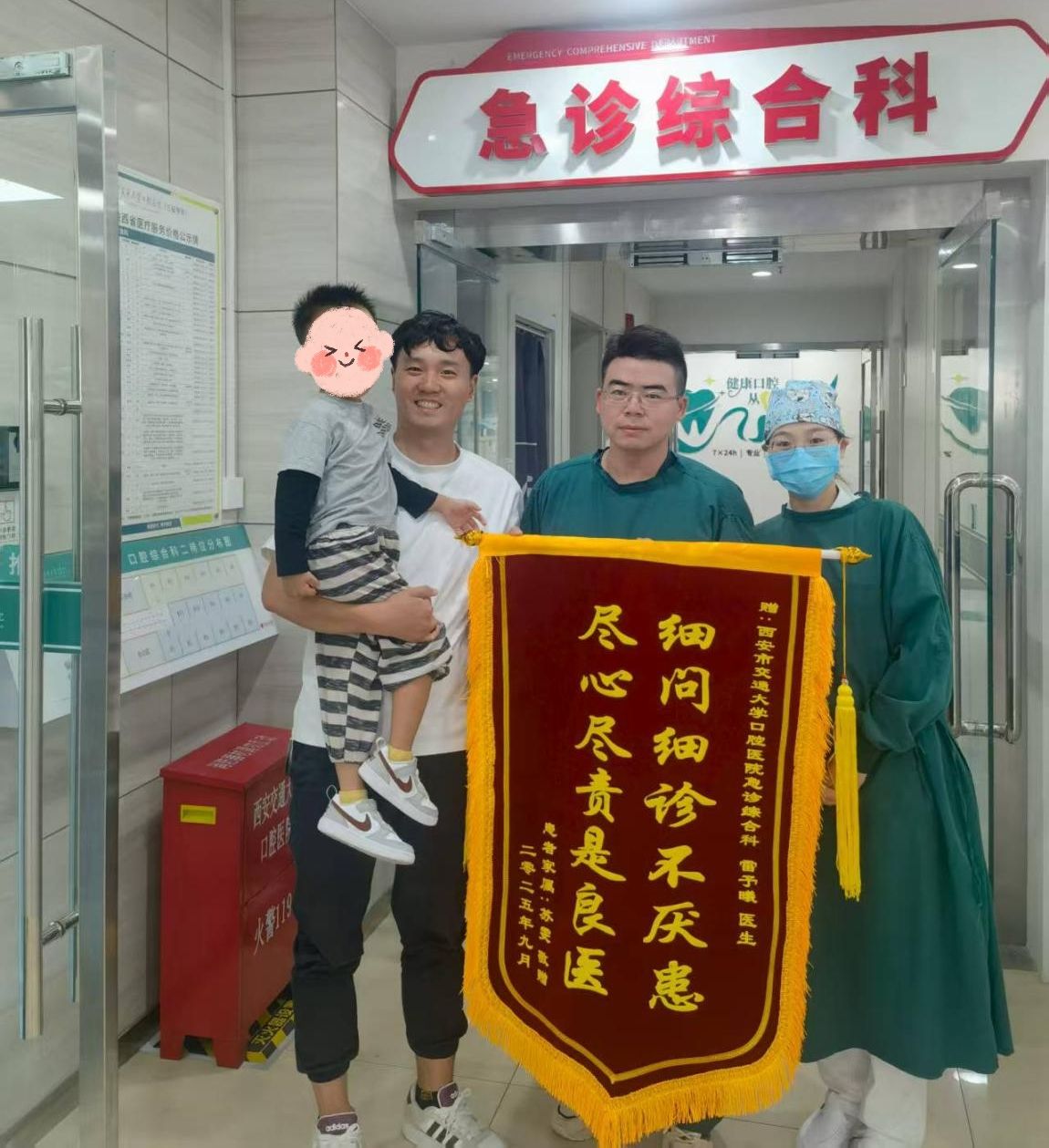“太感谢雷医生了!没有您,孩子真不知要遭多少罪!”9月2日,市民苏先生夫妇专程将一面写有“细问细诊不厌患,尽心尽责是良医”的锦旗送至我院口腔急诊科,紧紧握住雷予曦医生的手,连声道谢。这一幕温暖的场景,源自十余天前一次细致的外伤处理。8月18日,4岁的童童(化名)在家玩耍时不慎摔倒,上唇被硬物划伤,家长第一时间带往附近医院进行缝合。然而三天后,孩子伤口肿胀加剧,苏先生夫妇连夜带着童童来我院口腔急诊就诊。经初步处置后,...